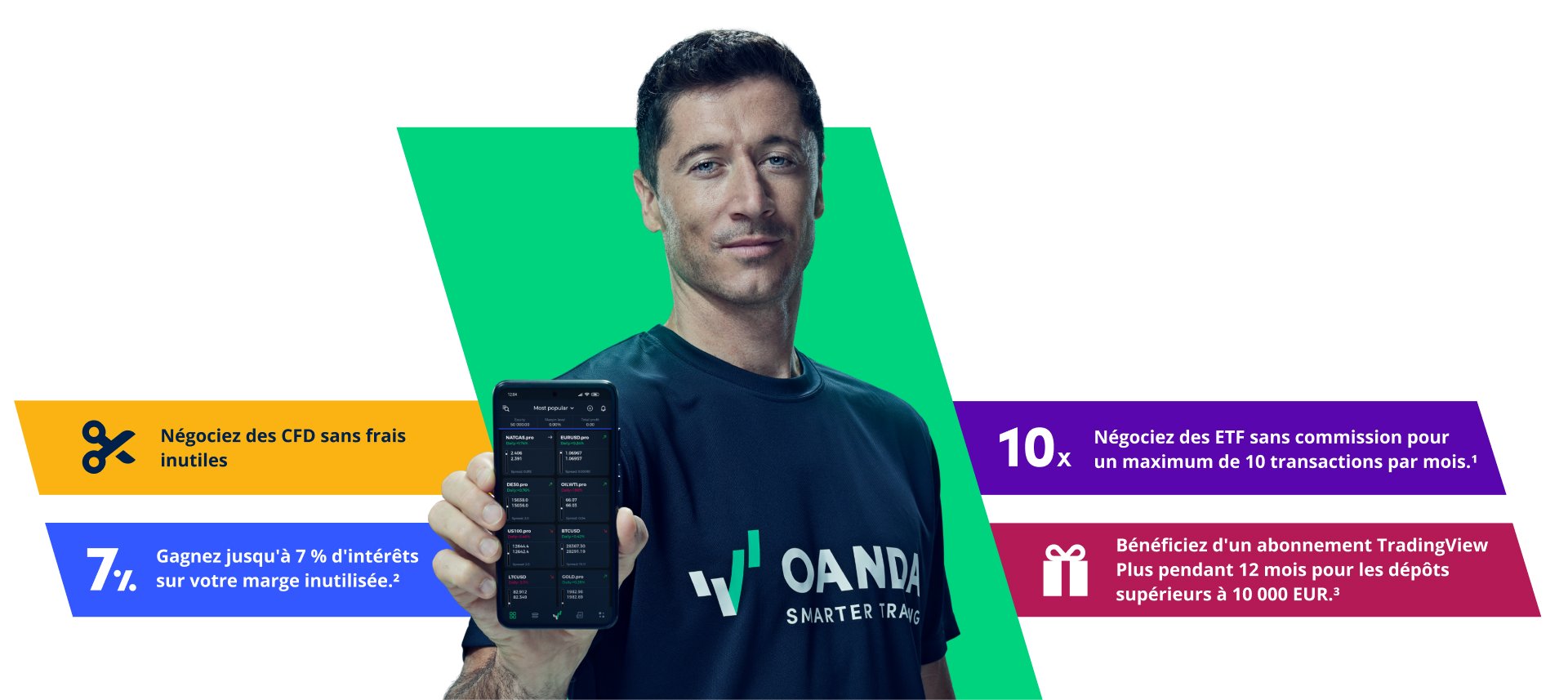 Gagnez jusqu'à 7 % d'intérêts sur votre marge inutilisée. Avec OANDA, votre argent rapporte des intérêts même lorsque vous ne négociez pas.2